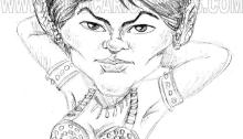 Caricatura de la modelo Laura Gemser. Lápiz. El original de 20×30 cm está a la venta por 30 €. Posibilidad de colorearlo por 20€ más. Info: rufocaricaturas@gmail.com