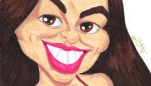 Caricatura de la modelo Adriana Lima. Acrílicos y rotuladores. El original de 30×40 cm está a la venta por 100 €.También disponibles reproducciones tamaño póster (30x40cm, 5€) y mini-prints (10x15cm, 3€) Info: rufocaricaturas@gmail.com