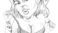 Caricatura de la modelo Amber Valletta. Lápiz. El original de 20×30 cm está a la venta por 30 €. Posibilidad de colorearlo por 20€ más. Info: rufocaricaturas@gmail.com