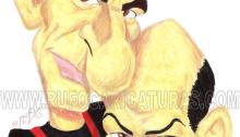 Caricatura de los humoristas Faemino y Cansado. acrilicos y rotuladores. El original de 20×30 cm está a la venta por 60 €.. Info: rufocaricaturas@gmail.com