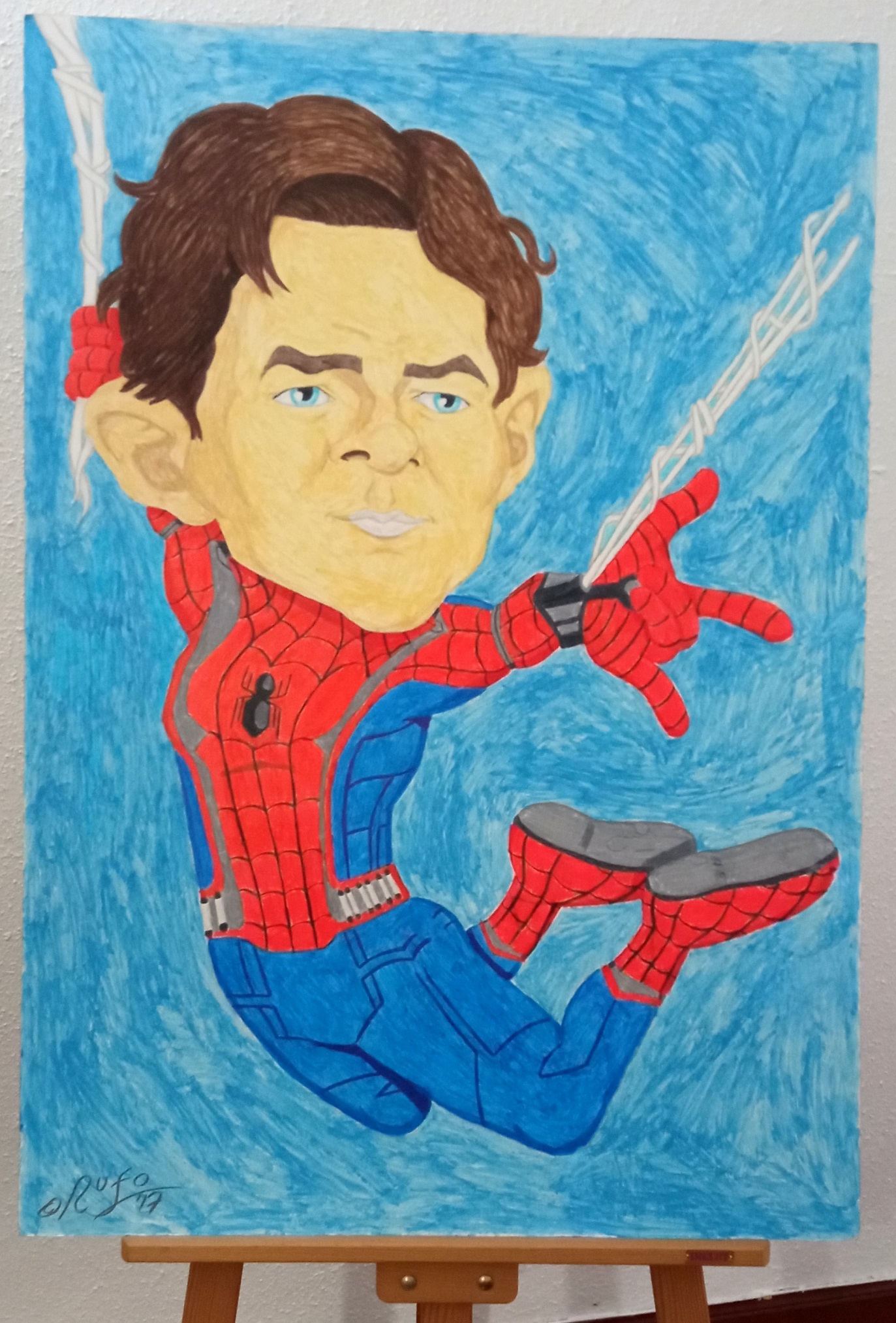 SPIDERMAN Tom Holland 30×40 cm. Acrílicos y rotuladores. 100€. comprar aquí