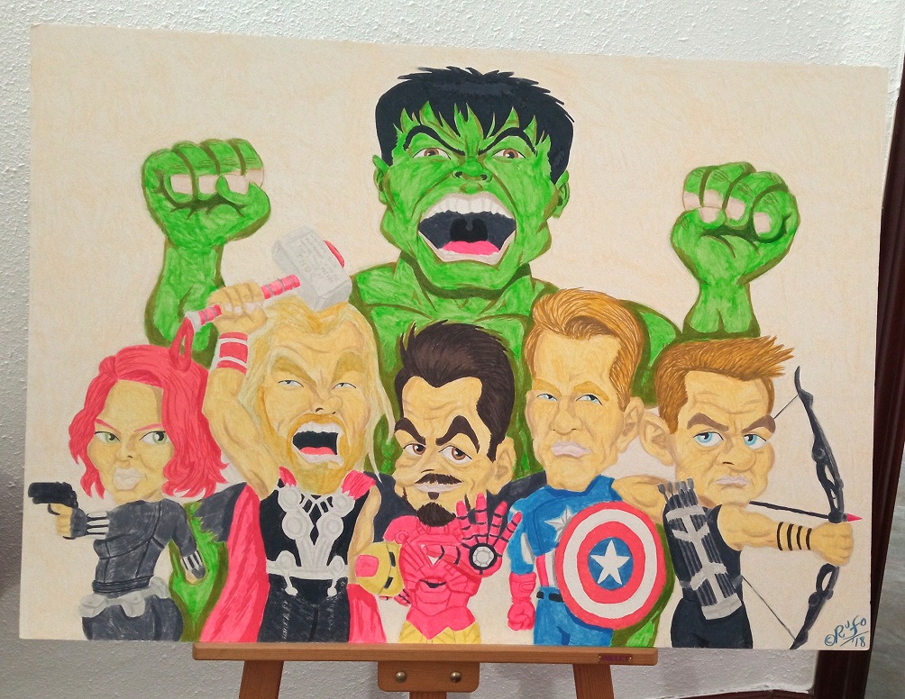 VENGADORES gigante 70x100 cm. Acrílicos y rotuladores. 1000€. comprar aquí
