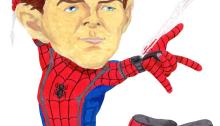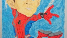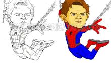 Caricatura de Tom Holland como Spiderman. Acrílicos y rotuladores. El original de 30×40 cm está a la venta por 100 €.También disponibles reproducciones tamaño póster (30x40cm, 5€) y mini-prints (10x15cm, 3€) Info: rufocaricaturas@gmail.com