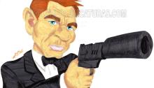 Caricatura del actor Daniel Craig como James Bond. Acrílicos y rotuladores. El original de 30×40 cm está a la venta por 100 €.También disponibles reproducciones tamaño póster (30x40cm, 5€) y mini-prints (10x15cm, 3€) Info: rufocaricaturas@gmail.com
