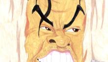 Caricatura de Mel Gibson como Braveheart. Acrílicos y rotuladores. El original de 30×40 cm está a la venta por 100 €.También disponibles reproducciones tamaño póster (30x40cm, 5€) y mini-prints (10x15cm, 3€) Info: rufocaricaturas@gmail.com
