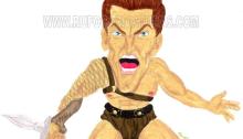 Caricatura del actor Kirk Douglas como Espartaco. Acrílicos y rotuladores. El original de 30×40 cm está a la venta por 100 €.También disponibles reproducciones tamaño póster (30x40cm, 5€) y mini-prints (10x15cm, 3€) Info: rufocaricaturas@gmail.com