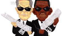 Caricatura de Tommy Lee Jones y Will Smith como los Hombres de negro. Acrílicos y rotuladores. El original de 30×40 cm está a la venta por 120 €.También disponibles reproducciones tamaño póster (30x40cm, 5€) y mini-prints (10x15cm, 3€) Info: rufocaricaturas@gmail.com