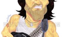 Caricatura de Sylvester Stallone como Rambo. Acrílicos y rotuladores. El original de 30×40 cm está a la venta por 100 €.También disponibles reproducciones tamaño póster (30x40cm, 5€) y mini-prints (10x15cm, 3€) Info: rufocaricaturas@gmail.com