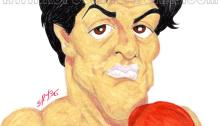Caricatura de Sylvester Stallone como Rocky. Acrílicos y rotuladores. El original de 30×40 cm está a la venta por 100 €.También disponibles reproducciones tamaño póster (30x40cm, 5€) y mini-prints (10x15cm, 3€) Info: rufocaricaturas@gmail.com