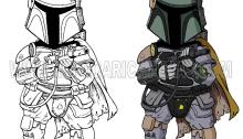 Caricatura de Bobba fett para la lámina edición limitada de Star Wars. El original a tinta de 20×30 cm está a la venta por 40 €. Info: rufocaricaturas@gmail.com