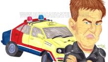 Caricatura de la serie El coche fantástico. Acrílicos y rotuladores. El original de 30×40 cm está a la venta por 100 €.También disponibles reproducciones tamaño póster (30x40cm, 5€) y mini-prints (10x15cm, 3€) Info: rufocaricaturas@gmail.com