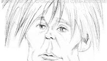 Caricatura del artista Andy Warhol. Lápiz. El original de 20×30 cm está a la venta por 30 €. Posibilidad de colorearlo por 20€ más. Info: rufocaricaturas@gmail.com