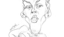 Caricatura de la actriz Brigitte Nielsen. lapiz. El original de 20×30 cm está a la venta por 30 €. Info: rufocaricaturas@gmail.com