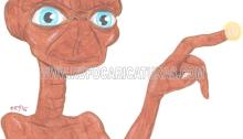 Caricatura de la película E.T. el extraterrestre. Acrílicos y rotuladores. El original de 30×40 cm está a la venta por 100 €.También disponibles reproducciones tamaño póster (30x40cm, 5€) y mini-prints (10x15cm, 3€) Info: rufocaricaturas@gmail.com