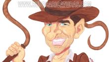 Caricatura de Harrison Ford como Indiana Jones. Acrílicos y rotuladores. El original de 30×40 cm está a la venta por 100 €.También disponibles reproducciones tamaño póster (30x40cm, 5€) y mini-prints (10x15cm, 3€) Info: rufocaricaturas@gmail.com