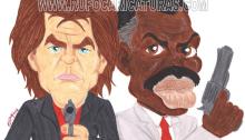 Caricatura de Mel Gibson y Danny Glover en la película Arma letal. Acrílicos y rotuladores. El original de 30×40 cm está a la venta por 120 €.También disponibles reproducciones tamaño póster (30x40cm, 5€) y mini-prints (10x15cm, 3€) Info: rufocaricaturas@gmail.com