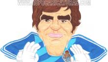caricatura del portero de la Real Sociedad Luis Miguel Arconada. Acrílicos y rotuladores. El original de 30×40 cm está a la venta por 100 €.También disponibles reproducciones tamaño póster (30x40cm, 5€) y mini-prints (10x15cm, 3€) Info: rufocaricaturas@gmail.com