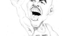 Caricatura del jugador de baloncesto Michael Jordan. Lápiz. El original de 30×40 cm está a la venta por 60 €. Posibilidad de colorearlo por 40€ más. Info: rufocaricaturas@gmail.com