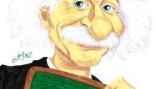 Caricatura de Albert Einstein. Acrílicos y rotuladores. El original de 30×40 cm está a la venta por 100 €.También disponibles reproducciones tamaño póster (30x40cm, 5€) y mini-prints (10x15cm, 3€) Info: rufocaricaturas@gmail.com