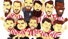 Caricatura del Athletic club de Bilbao, campeones de la Copa del rey 2024. Arriba: Iñaki Williams, Nico Williams, Gorka Guruzeta, Adu Ares, Julen Aguirrezabala, Asier Villalibre, Ander Herrera, Raúl García, Óscar de Marcos, Mikel Jaureguizar; Centro: Unai Simón, Yeray Álvarez, Alex Berenguer, Yuri Berchiche, Ernesto Valverde, Aitor Paredes, Iñigo Lekue, Mikel Vesga, Iñigo Ruiz de…