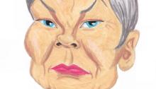 Caricatura de la actriz Judi Dench. Acrílicos y rotuladores. El original de 20×30 cm está a la venta por 50 €.También disponibles reproducciones tamaño póster (30x40cm, 5€) y mini-prints (10x15cm, 3€) Info: rufocaricaturas@gmail.com