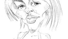 Caricatura de la modelo Tyra Banks. Lápiz. El original de 20×30 cm está a la venta por 30 €. Posibilidad de colorearlo por 20€ más. Info: rufocaricaturas@gmail.com